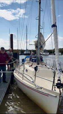 Das Anlegen bei Windstärke 7 Bft. gestaltete sich schwierig, gelang uns mit vereinten Kräften jedoch so, dass alle Boote unverehrt im Hafen ankamen und vertäut wurden.