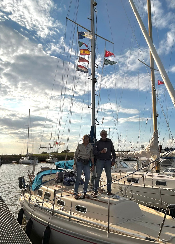 Von dort startete er am 29. Mai 2025 von Villa do Porto Santa Maria über A Coruna, um anschließend in England erneut bei der "Jester Challange" wieder dabei zu sein. An dieser Einhand Regatta hat er bereits 2023 teigenommen. Nun ist er wieder zurück und konnte seine Frau Gisela in die Arme schließen. Nachdem mit Sekt angestoßen wurde gab es viel zu erzählen.